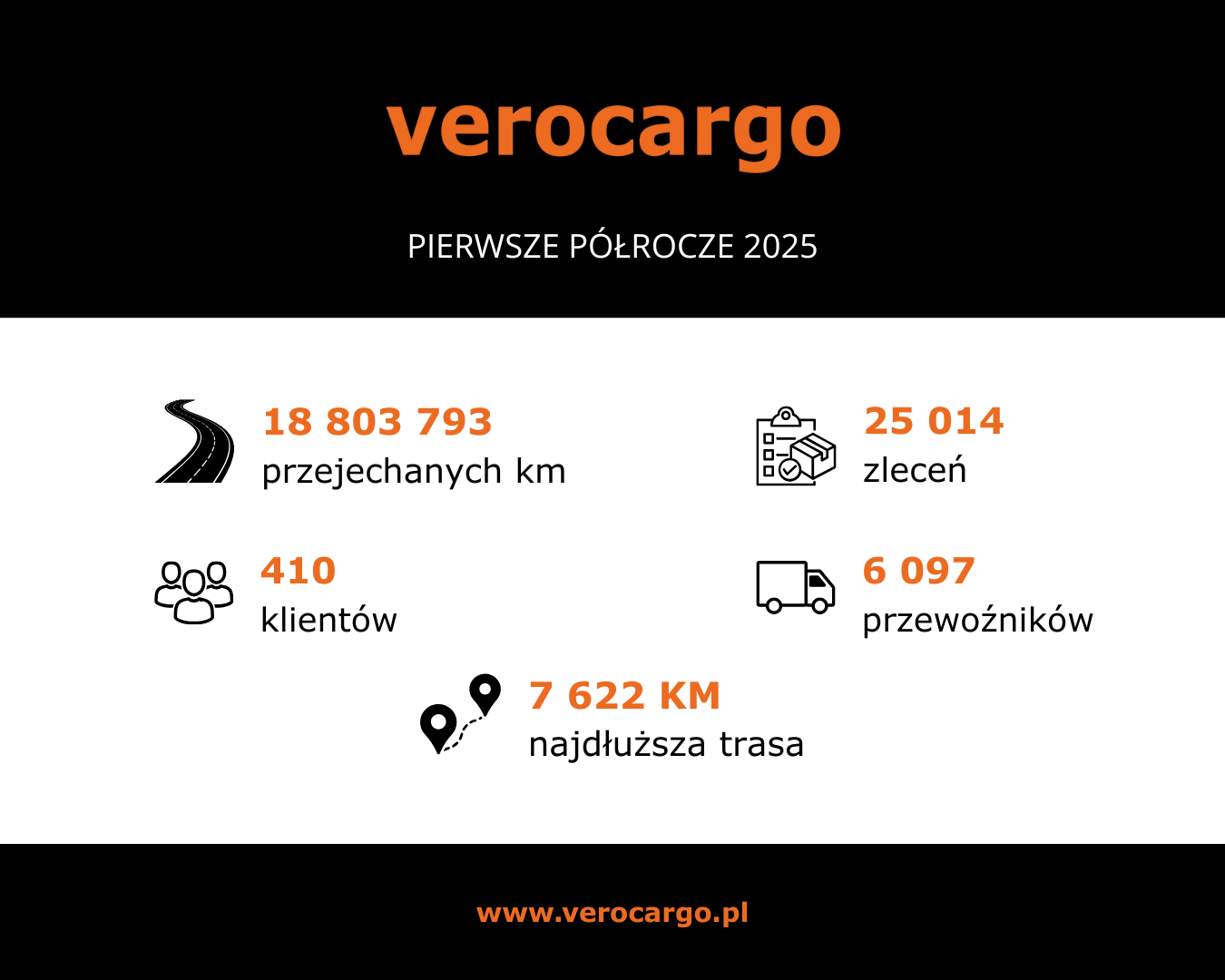 Za nami intensywne pół roku 2025. Był to bardzo pracowity i efektywny czas dla verocargo, a liczby mówią same za siebie. Wszystkie dane to efekt naszych działań w spedycji drogowej, morskiej i intermodalnej.